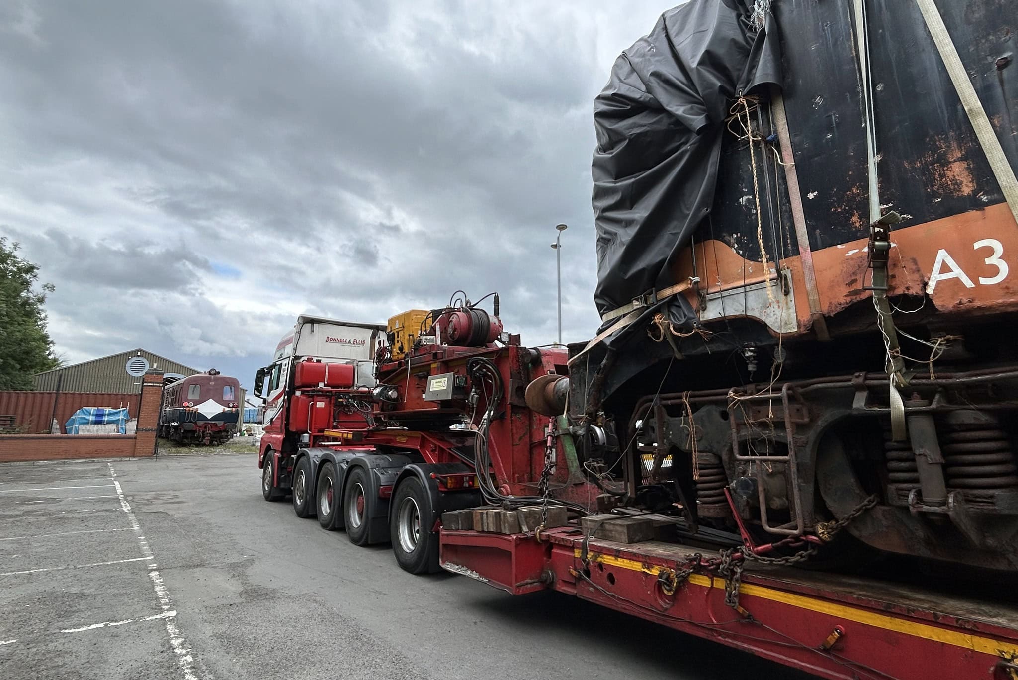 On Sunday 27th July 2025, the fourth and final ITG locomotive from Moyasta arrived in Downpatrick for the next stage in its preservation story, as A class loco A3R touched down on Downpatrick tracks at last.