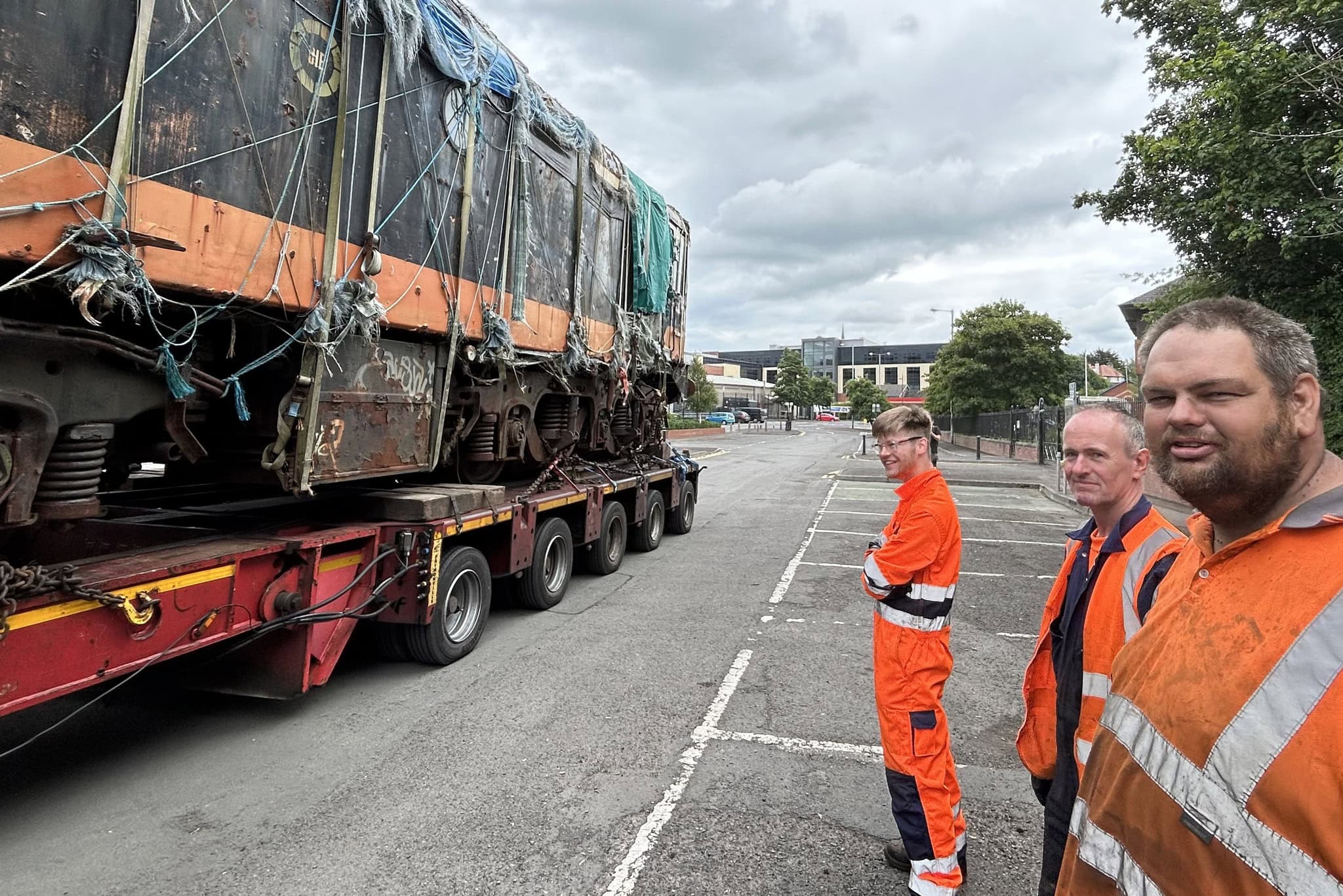 Loading took place at Moyasta on Saturday 26th July, with a lot less drama than our first attempt in June. With A3R on board and safely strapped down, the convoy made its slow journey across Ireland, overnighting at Lusk services and arriving at Downpatrick at lunchtime on Sunday.