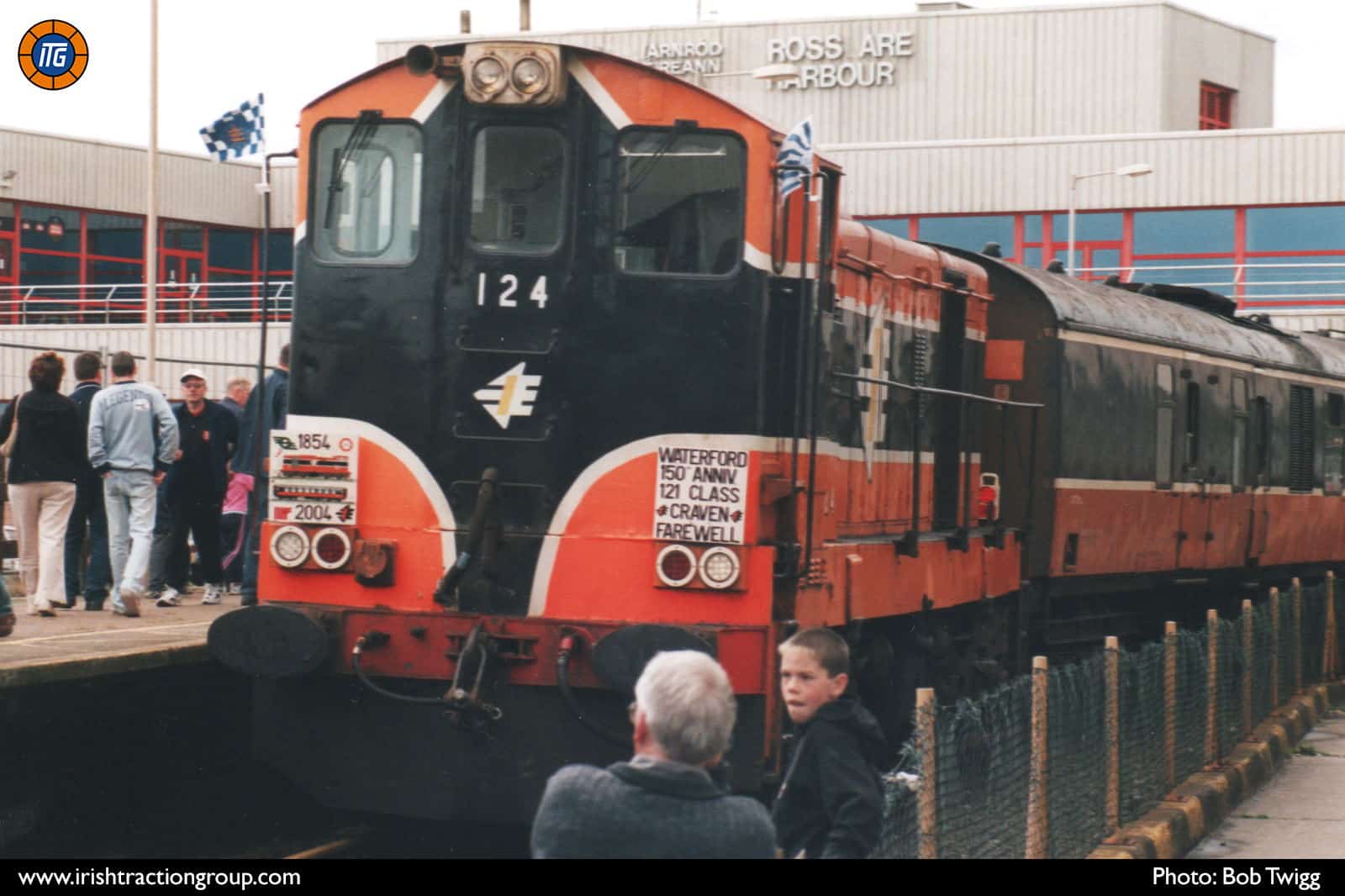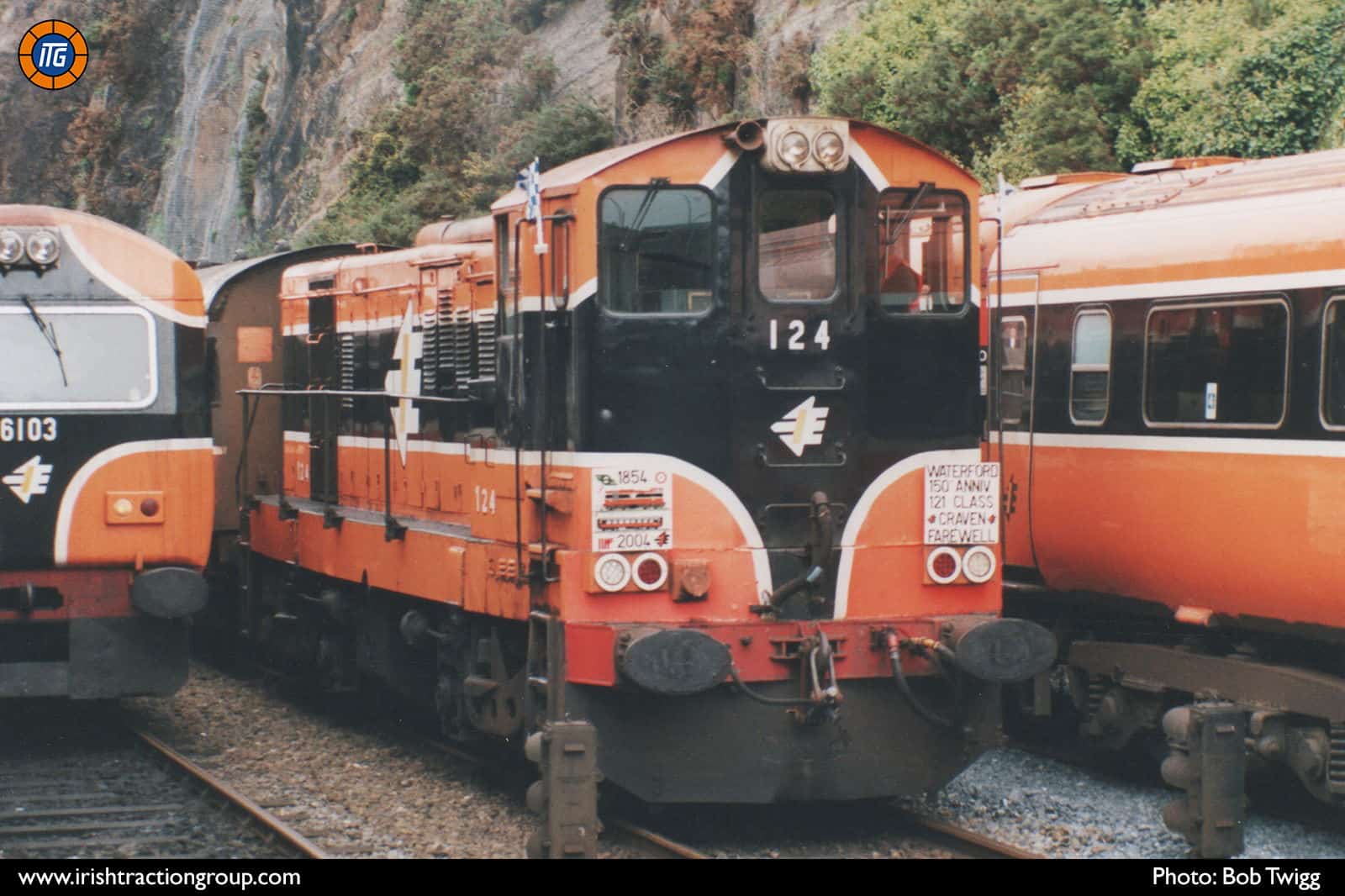 Following their eventual withdrawal, both locomotives were then stored at Inchicore Works awaiting preservation. Locomotive 124 was secured for preservation by the Irish Traction Group on 7th November 2009, and was sold to the Group for the nominal sum of €1 plus VAT.